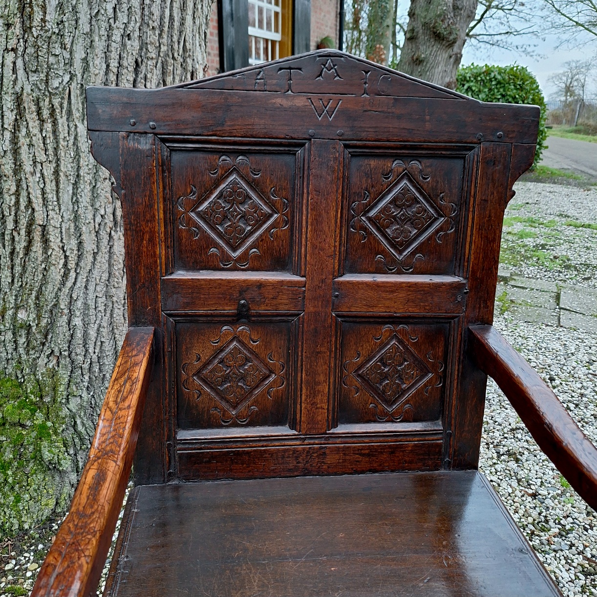 Engelse Wainscot chair. Datering: 17e eeuw. Houtsoort: Eiken.