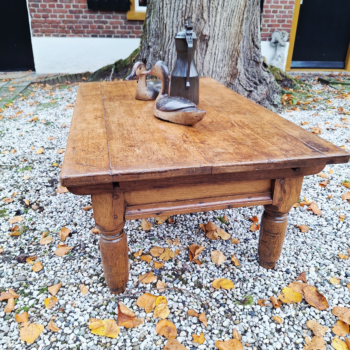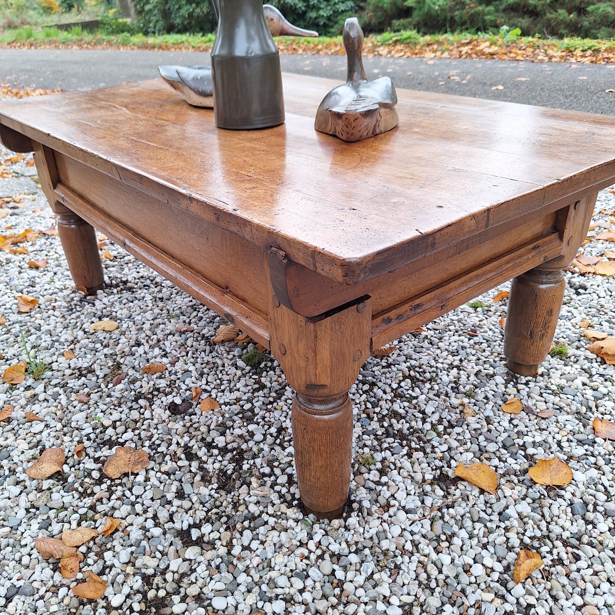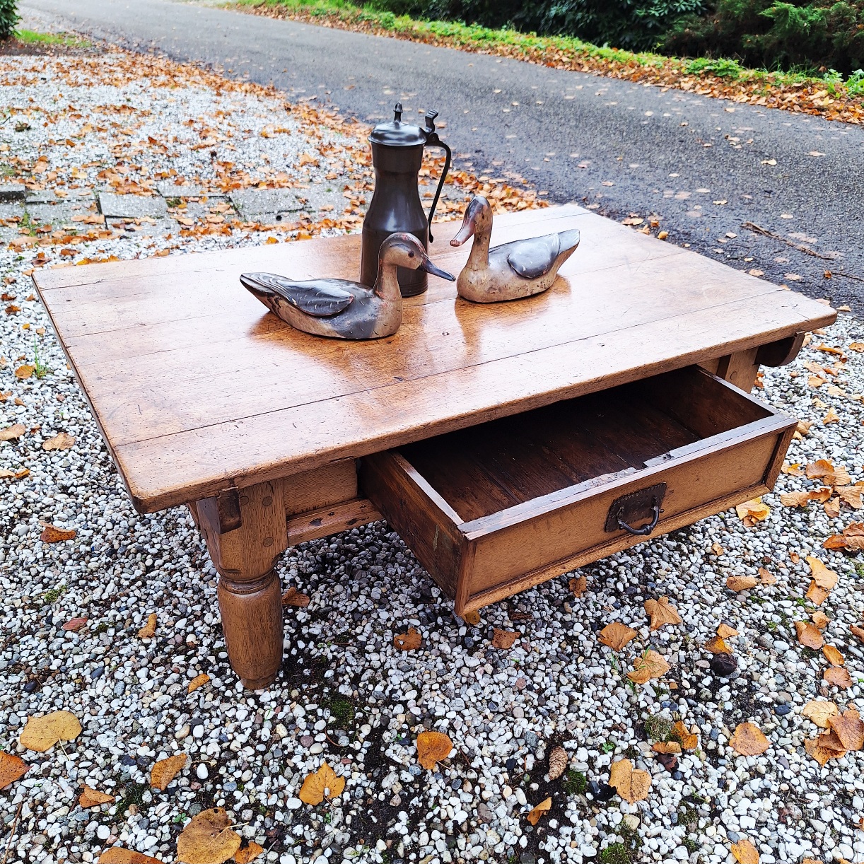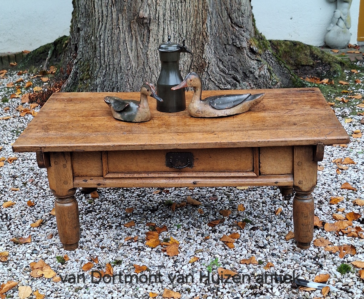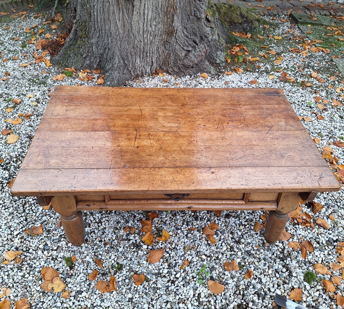 Oostenrijkse salontafel met lade, ca1800. Houtsoort: noten. Afmeting: 120cm x 73cm en 47cm hoog. Prijs op aanvraag.