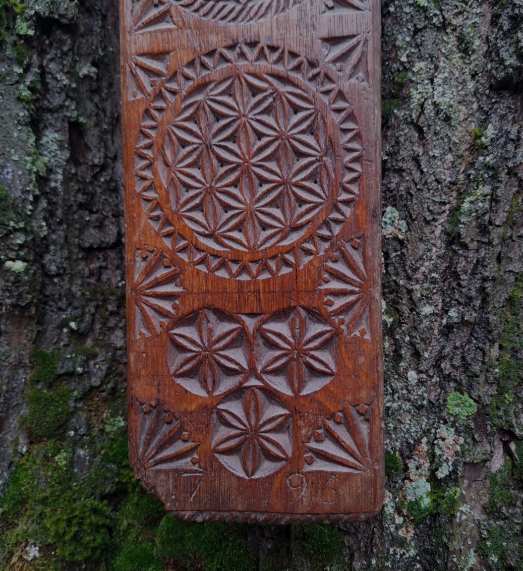 18e eeuwse Friese Mangelplank met kerfsnede, gedat: 1795.