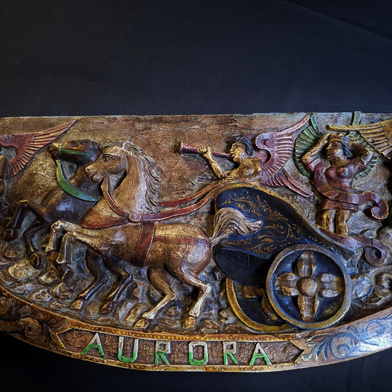 Het feit dat het woord Aurora prominent staat, suggereert dat het mogelijk deel was van een naamplaat voor een schip of rijtuig.