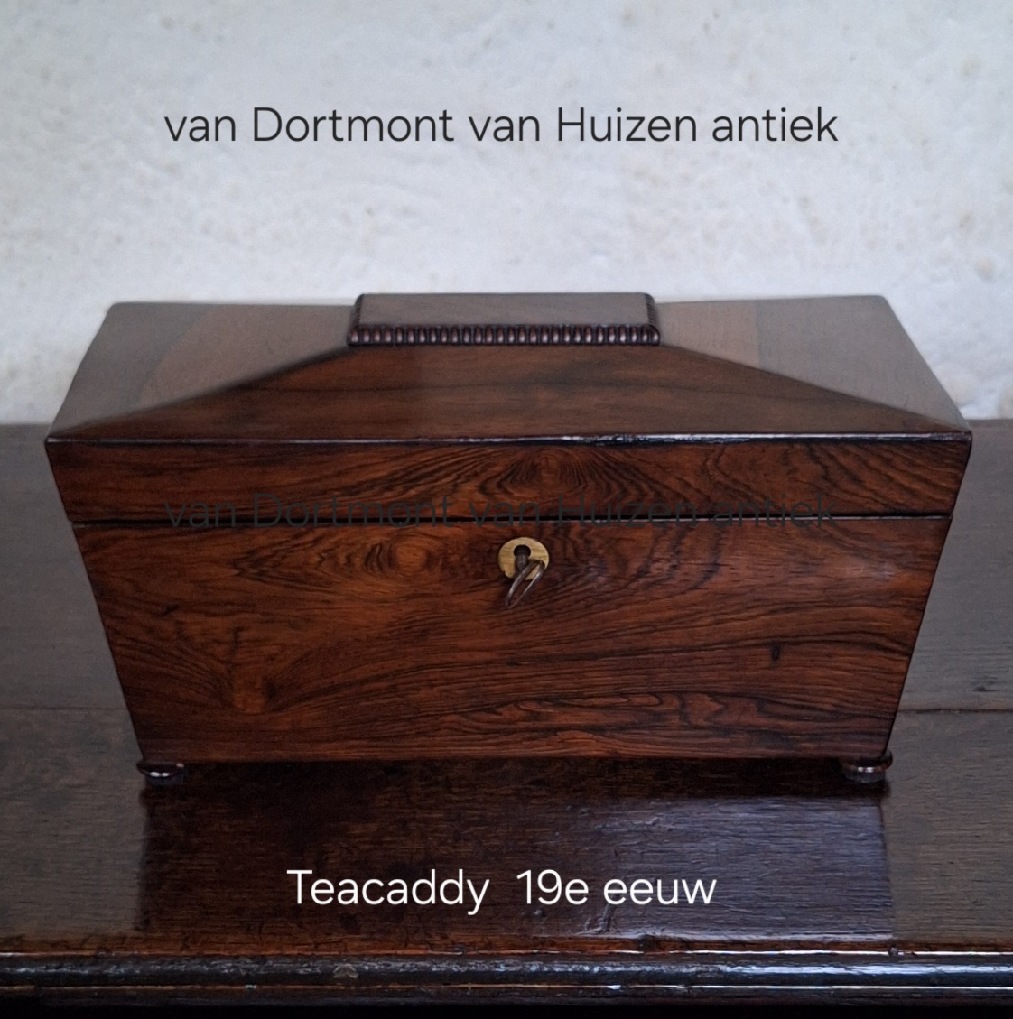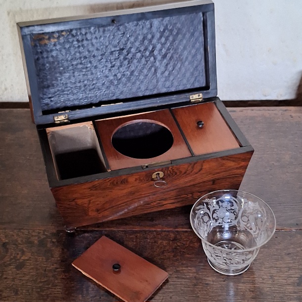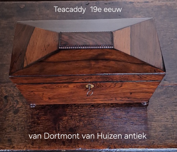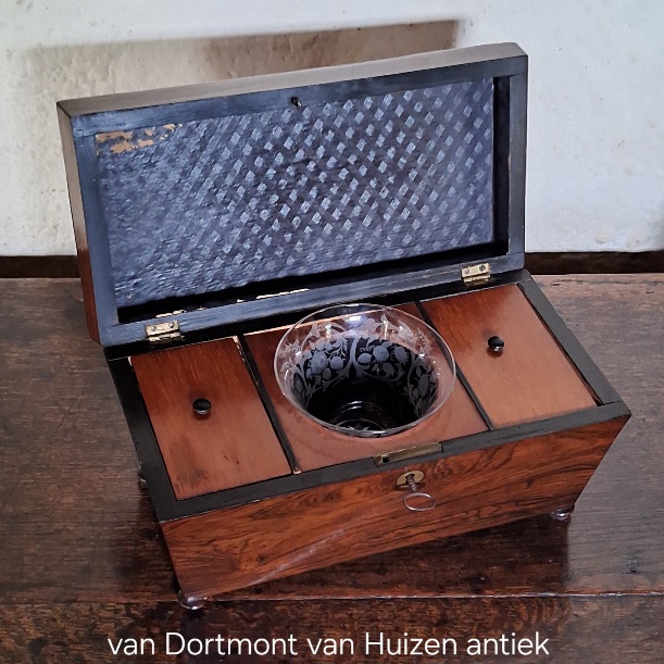 Mooie palisander teacaddy met binnen dekseltjes en meng glas.